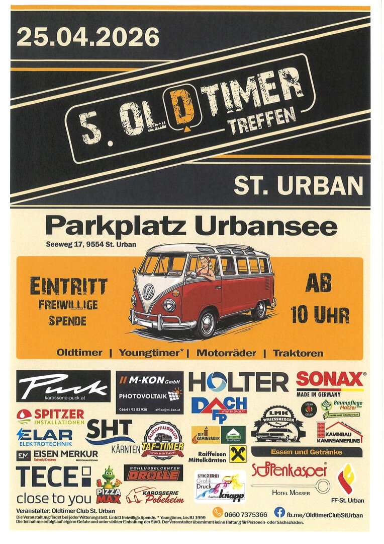Am 25.04.2026 wird St. Urban wieder zum Treffpunkt für alle Liebhaber klassischer Fahrzeuge!